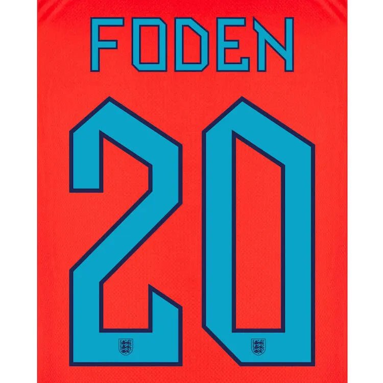 England 2022-23 Away Foden #20 Jersey Name Set