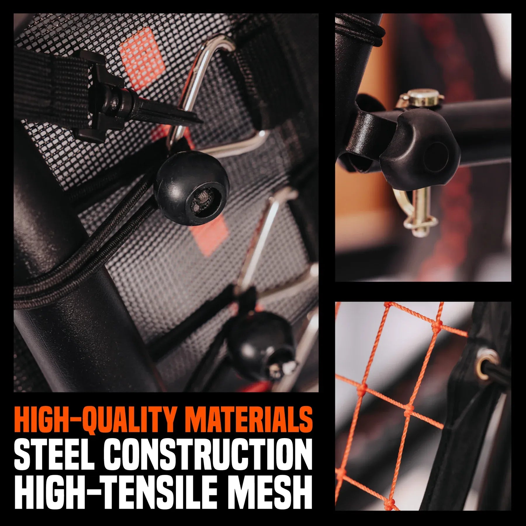 • Strike the ball through the passing gate & control the ball as it travels up the mesh ramp and back to you.