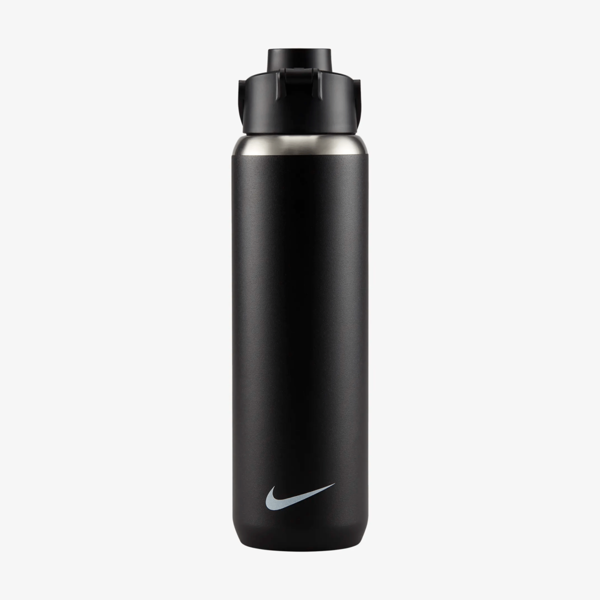 The Nike Stainless Steel Recharge Chug Bottle 24 oz. is made of vacuum-insulated steel to help keep beverages cold. Its ergonomic shape is comfortable and easy to hold. It boasts a durable, scratch-resistant finish and a twist off cap for easy drinking. It is dishwasher safe. Not intended for hot liquids.