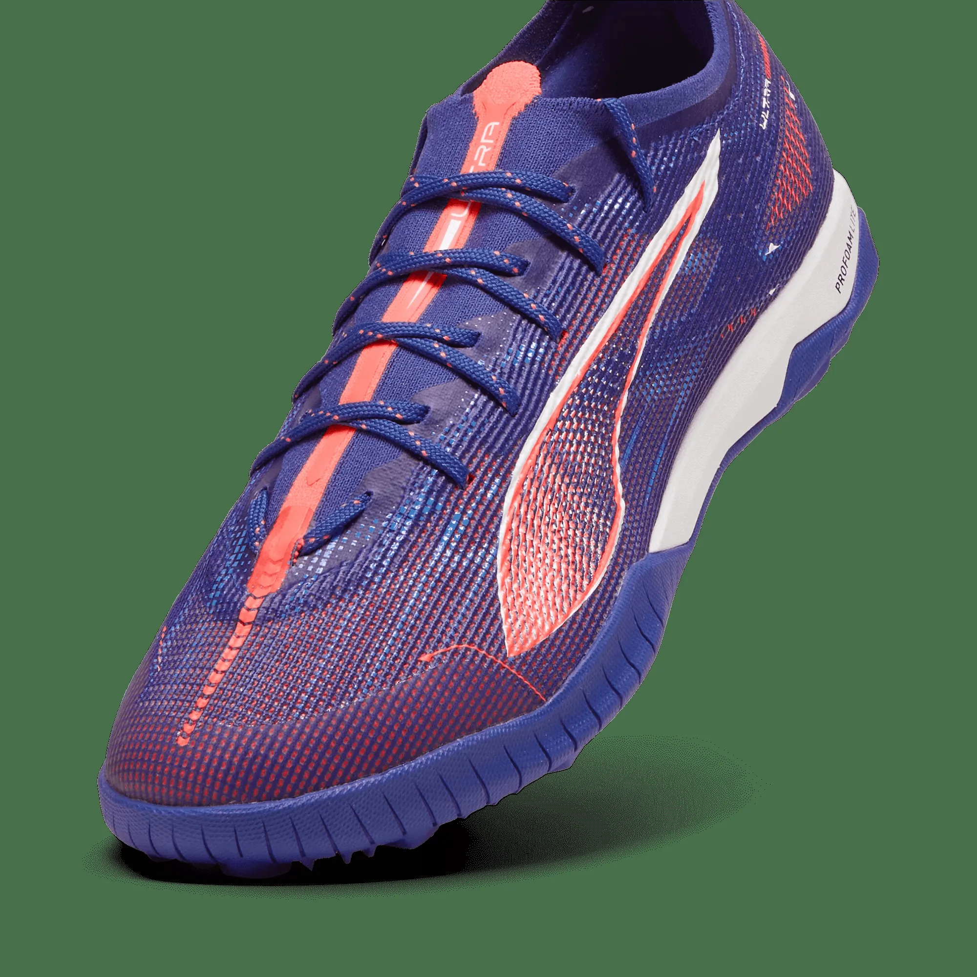 How fast is this ULTRA? Fasten your seatbelt. PWRTAPE support frame stabilizes the foot during quick changes of direction. Low-profile rubber outsole and ProFoam LITE midsole are designed for hard natural surfaces and artificial grass (2G). Wherever you play, play at full throttle.