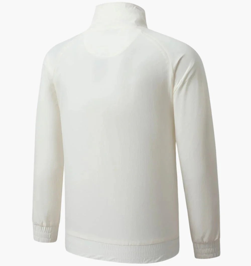 The jacket includes secure zippered pockets, perfect for storing personal items like your phone or wallet. Crafted from 100% polyester, this jacket offers durability and practicality without sacrificing style. The crisp white tone highlights the iconic Umbro logo and “ES” emblem, proudly showcasing your national pride with every wear.